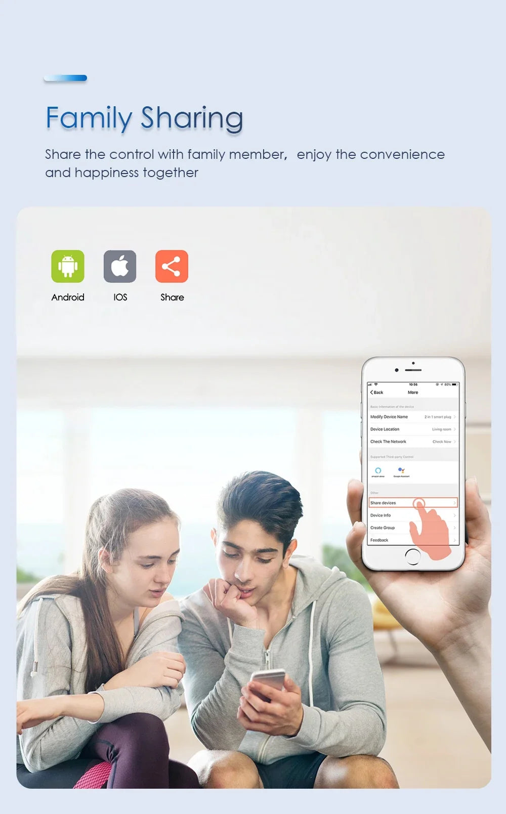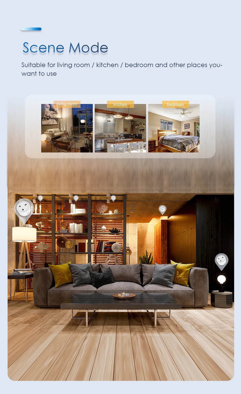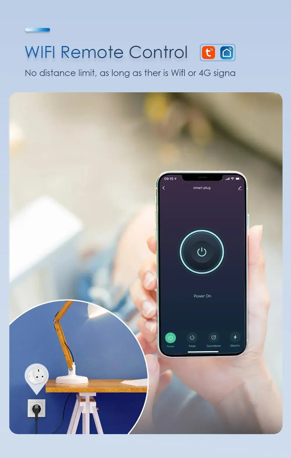 As long as the socket is connected to the home WiFi, the mobile phone can check the status of the socket and control the socket from anywhere in the world.